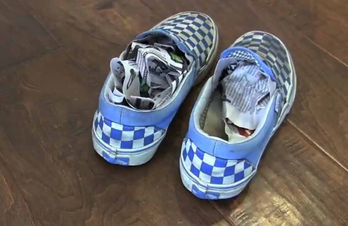 Lakukan hal tersebut ketika sepatu sedang tidak digunakan atau pun pada malam hari. Koran-koran yang disumpalkan ke dalam sepatu akan menyerap bau yang ada di dalam sepatu.