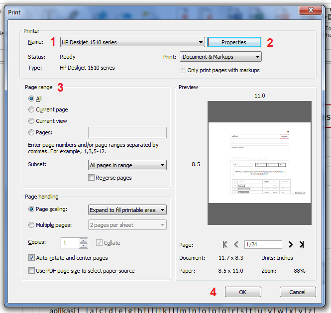 1. Buka terlebih dahulu dokumen yang ingin anda print di aplikasi PDF Reader, lalu pilih File di pojok kiri atas atau tekan tombol Ctrl + P